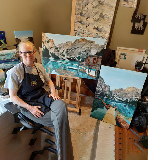 I have been visually impaired since birth. I always loved art and physical education in school. I now paint and share my story at speaking engagements.